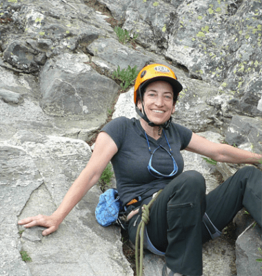 | Naomi Oreskes rock climbin at Jackson Hole 2011 (photo Andy Tankersley) |